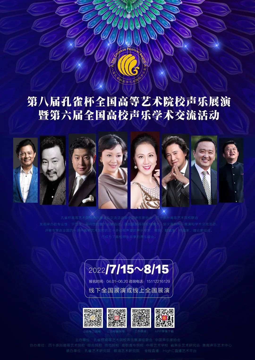 本活动包括学术交流、论文征集、孔雀杯高校声乐展演和小孔雀杯少儿声乐展演四个部分,具有较强的学术性、专业性、实践性和指导意义。我们诚恳邀请各院校(系)选送师生参加。组委会力争将本活动办得更具影响力,望各院校(系)领导能支持师生积极参加这项活动,为确保各项活动顺利进行,现将有关事项通知如下: