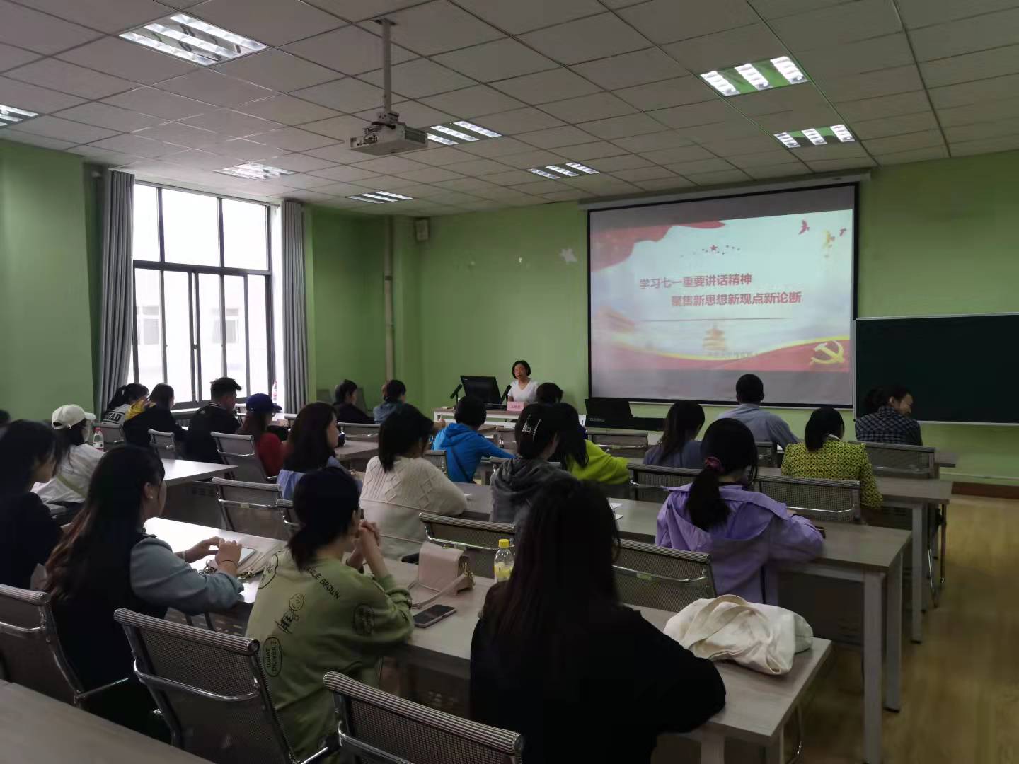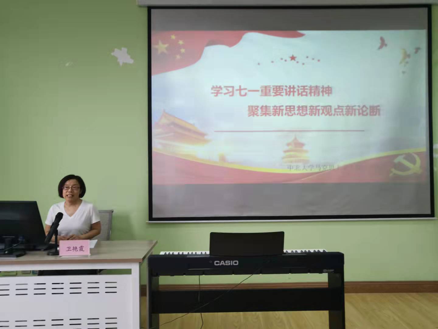 党史学习教育宣讲团卫艳霞老师以《学习七一重要讲话精神聚焦新思想新观点新要求》为题,为全院教工党员作了专题辅导,讲座由学院党委书记夏瑞丽主持。