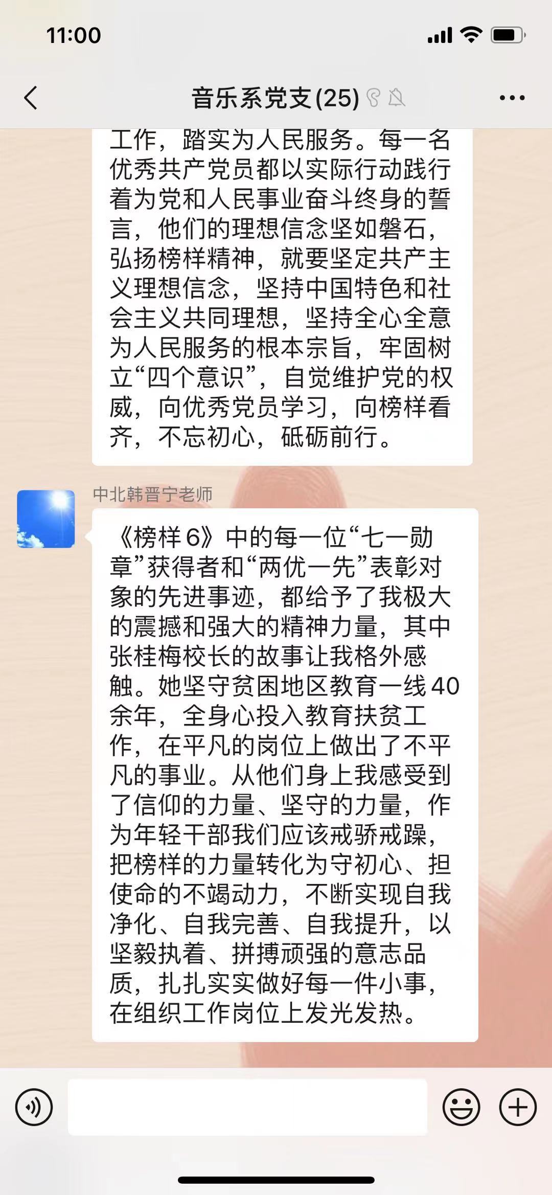 榜样不仅是一面镜子,也是一面旗帜,更是一种信仰。为深入贯彻学习习近平新时代中国特色社会主义思想,发挥先进典型示范引领作用,韩国探花 党委组织广大党员干部及辅导员集中收看《榜样6》(建党100周年特别节目),通过观看节目学习榜样精神,感受榜样力量,向榜样看齐。