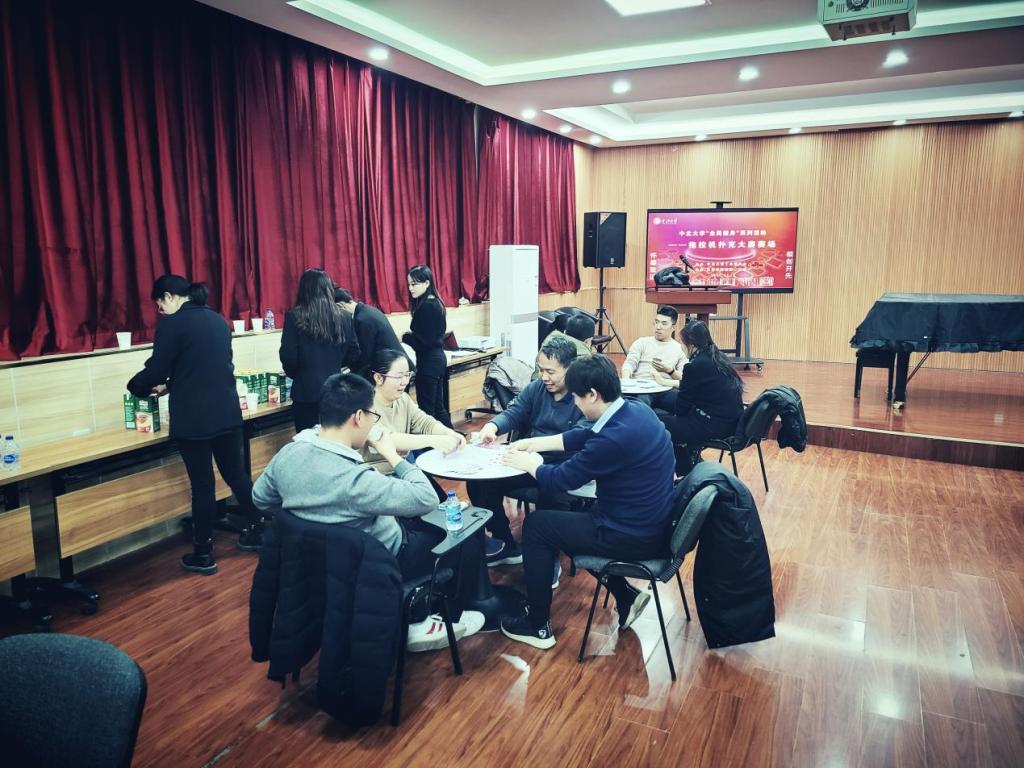本次比赛共有来自全校13支队伍报名参加。比赛现场气氛十分活跃,选手们密切配合、沉着应战,开始了一场胆量与智慧、技巧与配合相结合的角逐。对战双方比牌技,比智慧,赛成绩,赛友谊。大家在切磋牌技的同时,加强交流,增进了情谊。最终产生前六组进入半决赛。