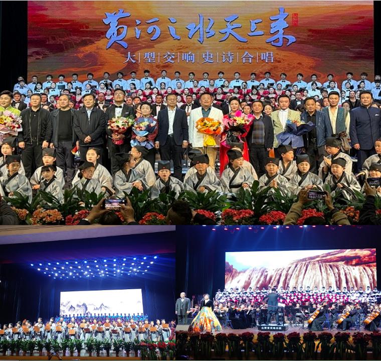 原创交响曲《黄河之水天上来》分为《古道长河》《母殇血祭》《气壮神州》《大河安澜》《云水襟怀》五个乐章,通过混声、童声、男女生等多种合唱形式,自信讲述了母亲河滋养东方龙族,充满文化自信的来龙去脉、格局情怀、抱负担当、光荣梦想。整场音乐会激情高昂、催人奋进,致敬黄河饱历曲折依然执着求索中开拓,为构建人类命运共同体而融入蔚蓝,携五洲拥抱浩瀚星海的云水胸襟。学院自接到演出任务以来,师生们每天都利用课余时间积极排练,仔细打磨每首歌曲的细节。经过20多天的辛苦排演,同学们掌握了《黄河之水天上来》整部合唱中不同的主题乐章作品。通过排练和参与展演,同学们深刻感受到黄河的惊涛骇浪和华夏儿女的坚定意志,用青春之声礼赞中华民族母亲河与高扬民族精神。近年来,学院积极落实立德树人根本任务,持续推动“三全育人”综合改革走深走实,将艺术展演与思政教育相融合,不断提高育人实效,为学校争创“双一流”建设增添力量!
