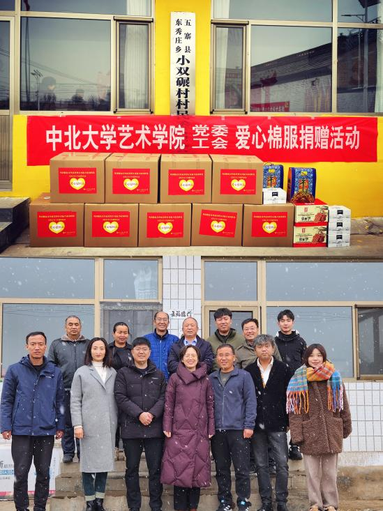 党委及院工会开展“艺心为民暖冬行”暨文化艺术下乡活动。学院党委书记郭云霞、副书记田维飞、工会主席陆晨曦、音乐系曹艺老师及2名艺术志愿者驱车三个多小时,到达忻州市五寨县东秀庄乡小双碾村和狮子沟新村,看望我校在两村工作队的一线老师们,同时为当地村民们送去学院师生们捐赠的9箱棉衣和军训服,捐赠仪式在小双碾村进行。郭书记代表韩国探花