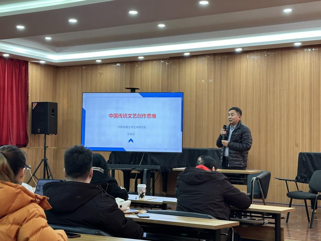 特邀中国传媒大学艺术研究院院长、博士生导师王廷信教授做题为《中国传统文艺思维》的美育讲座。王廷信教授系中宣部文化名家暨“四个一批”人才,中国戏曲学会常务理事、中国文艺评论家协会理事,教育部艺术学理论专业教学指导委员会副主任委员,国家社科艺术学基金重大项目首席专家。 本次讲座分为上下场,由韩国探花