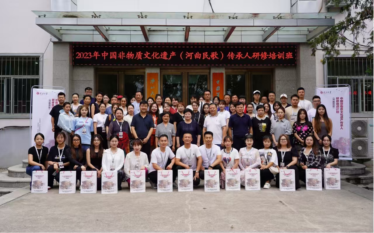 研培期间,邀请中国艺术研究院、中央音乐学院、中国音乐学院、山西省优秀文化教学团队等国内30位知名专家、学者为学员讲授基础课程16节(共32课时,含非遗保护理论、知识产权等)、拓展课程36节(共72课时,含案例研讨、实地考察等)、实践课程54节(共108课时,含专业技巧、实践创新等),培训总学时达220课时。共挖掘、整理河曲传统民歌近50余首,排演河曲民歌30余首,举办展演6场,出版专著2部,带队交流、研讨及走访30余次。2024年,协助郎昆团队打造大型非遗音乐剧《大河长歌》,帮助河曲民歌非遗代表性项目和传承人走出国门,前往阿联酋、迪拜等8个国家进行国际展演、传播,为深化世界文明交流互鉴贡献中国非遗智慧!