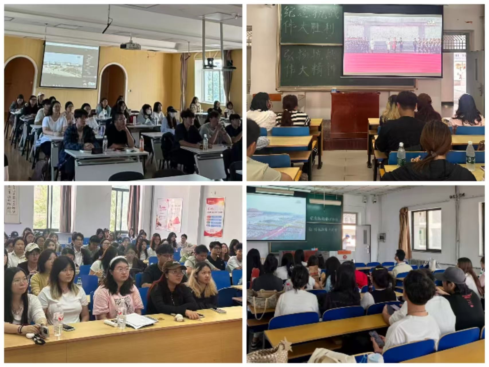 组织无课程安排的师生,集中观看纪念中国人民抗日战争暨世界反法西斯战争胜利80周年大会直播,以沉浸式学习传承红色基因,让爱国主义精神在师生心中落地生根。同时学院倡导代课教师以此次大会为契机开展课程思政教育,通过课堂多媒体设备播放大会相关内容,将抗战历史的精神内涵与专业教学有机融合,强化课程思政建设。
