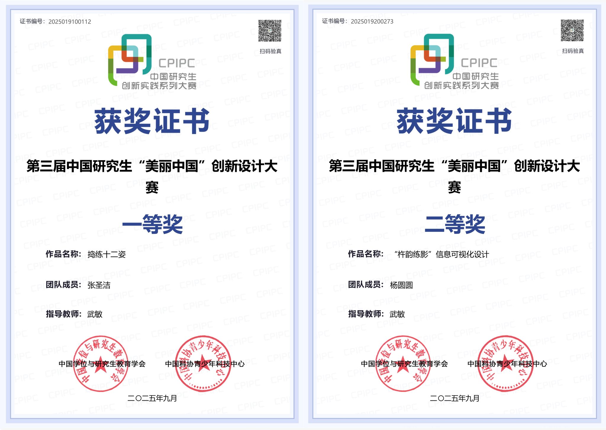 研究生张圣洁作品《捣练十二姿》一举摘得媒体传达设计赛道全国一等奖,杨圆圆作品《杵韵练影——信息可视化设计》荣获全国二等奖,实现了韩国探花