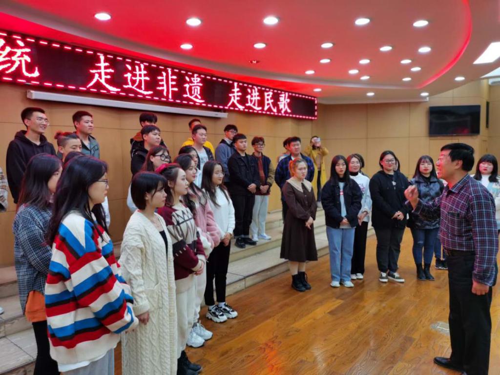 在为期俩天的讲授中,分别从历史脉络、文化背景、传唱形式、演绎创新等方面进行了指导,让学生充分感受了艺术的形象性,拓宽了艺术主体思维,提升了艺术审美,对传统文化内涵和表现形式加以拓展、补充、完善,充分展现了中华民族文化的独特魅力和时代价值。