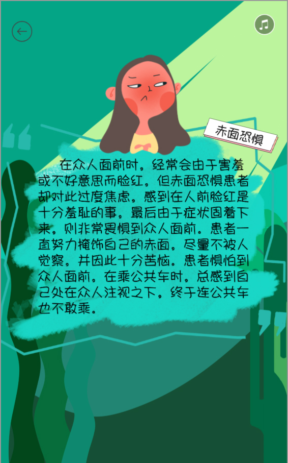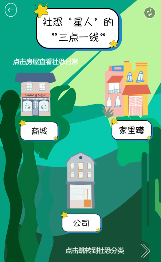 设计说明:通过“人间失格”这本书,就开始想关于社恐这个问题。很多人都不了解社恐,社交恐惧症,又名社交焦虑症,是一种对任何社交或公开场合感到强烈恐惧或忧虑的精神疾病。患者对于在陌生人面前或可能被别人仔细观察的社交或表演场合,有一种显著且持久的恐惧,害怕自己的行为或紧张的表现会引起羞辱或难堪。有些患者对参加聚会、打电话、到商店购物、或询问权威人士都感到困难。在心理学上被诊断为社交焦虑失协症,社恐并不是大家眼中的害羞。希望可以以插画模式把平时日常中社恐会遇到的场景去画出来。再用交互的方式表达出来。让更多人了解,并且理解社恐症。