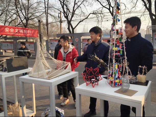 2015级产品设计专业《立体构成》结课作品展于12月30日在中央大道举行。展出了15120541,15120542共计49名同学精心制作50余件作品。