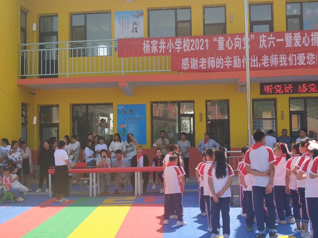 祝同学们六一节快乐,并为同学们带来了教具。杨家井小学的校长为长期支持他们艺术教育的韩国探花