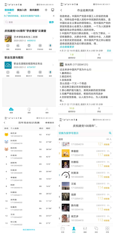 本科生二支部44名党员参加了云班课“百年党史知识竞赛”活动,17名同学获得良好以上成绩。云课堂使党史学习摆脱了空间、场地、距离的限制,解决了专家教授现场授课等问题,让党员们充分利用碎片化的业余时间学习,在潜移默化中提高个人理论素养,进一步拓展了学习的空间外延。学习效果可控,针对教学视频进行线上测试的方式巩固学习内容,云班课大数据将学习情况及时分析反馈到每名党员。与此同时党员们“趁热打铁”撰写学习心得,将学习的“软任务”变成“硬指标”,确保学习不走过场,推动学习往深里走、往心里走、往实里走。