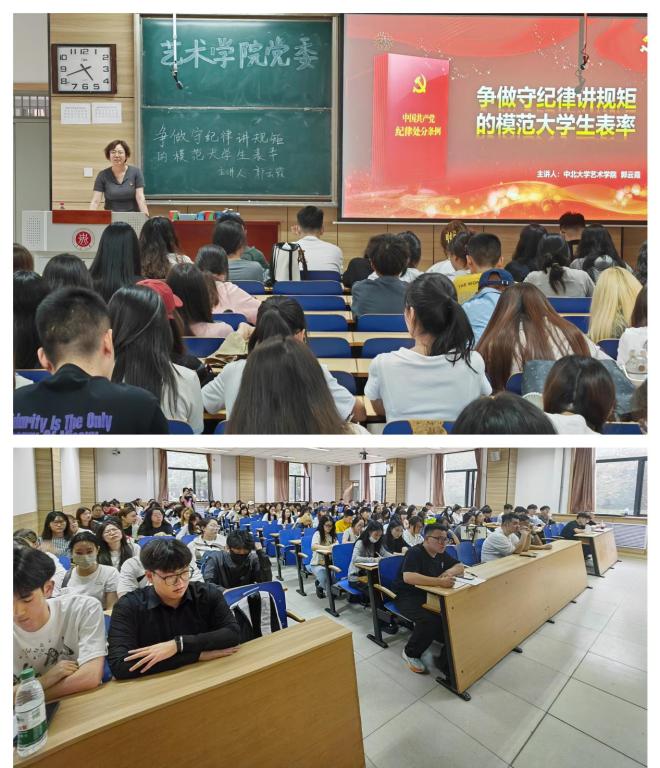 郭云霞同志从“为什么、学什么、怎么学”三个方面对党纪学习教育进行了详细解读,并从考试纪律、学术道德、交通安全、消防安全、校园暴力、网络诈骗、不当言论等方面分析了大学生日常行为需要受到的约束,梳理了学生容易出现违纪的风险点,提升了学生的纪律意识和政治觉悟。郭云霞同志最后强调,政治纪律是最重要、最根本、最关键的纪律,是打头、管总的纪律,要坚持心有所畏守规矩,言有所戒守纪律,行有所止守底线,真正使学习党纪的过程成为增强纪律意识、提高党性修养的过程。