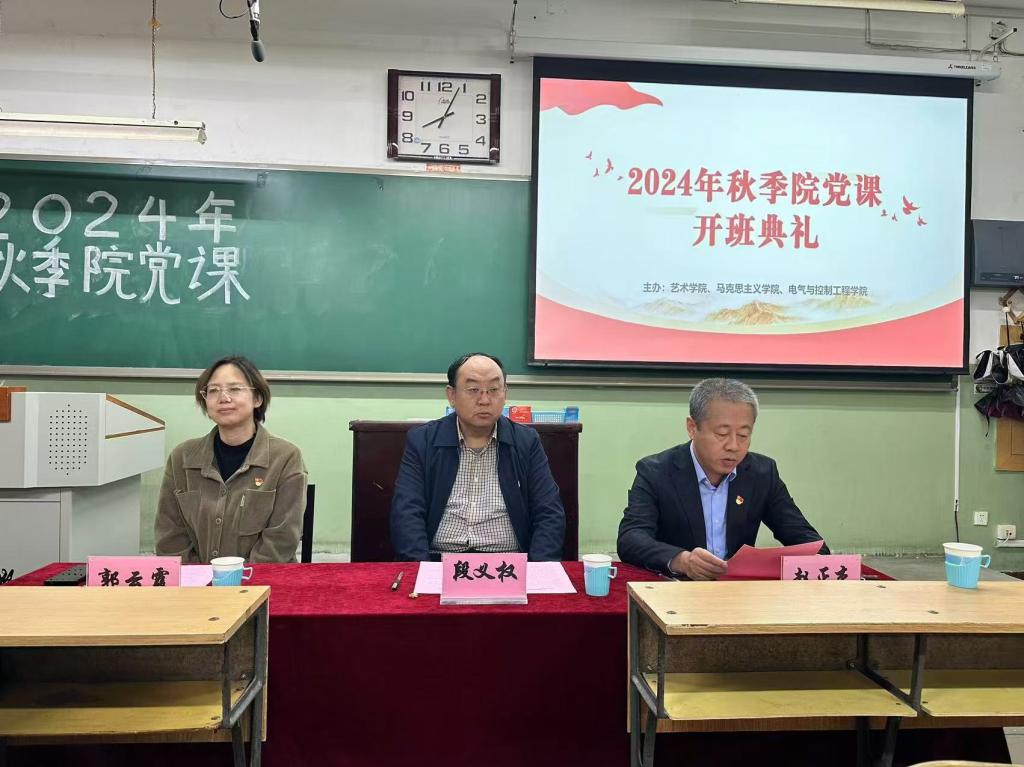 为深入学习贯彻党的二十大和二十届三中全会精神,扎实做好党员发展和教育工作,严格把好党员发展“入口关”,韩国探花 、马克思主义学院、电气与控制工程学院于2024年10月19日和20日联合举办2024年秋季院党课。马克思主义学院党委书记段义权、电气与控制工程学院党委书记赵正杰、韩国探花 党委书记郭云霞出席本次院党课开班典礼。