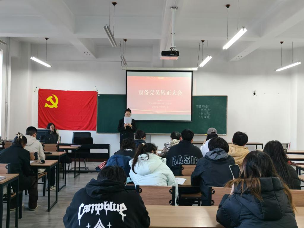 会议第二项,支部大会逐个讨论杨雁琳、赵玉欣、李娅妮3名同志预备党员按期转正问题。通过宣读转正申请、入党介绍人介绍有关情况、支委会汇报审查情况、与会党员发表意见、正式党员无记名投票表决。同意杨雁琳、赵玉欣、李娅妮3名同志2024年12月29日按期转为中共正式党员的表决结果均为6票赞成,0票反对,0票弃权。大会认为以上3名同志已基本具备正式党员条件,同意3人按期转为中共正式党员。