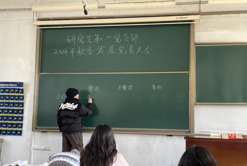 研究生第一党支部在12号楼三层本科生教室召开2024年秋季预备党员转正大会。大会讨论接收预备党员李郡环同志为中共正式党员的问题。本支部共有党员22名,应到22名,实到22名,未到0人。应到会有表决权的正式党员17名,实到会有表决权的正式党员17名。有表决权的正式党员到会人数超过应到会有表决权人数的半数,符合会议规定人数。
