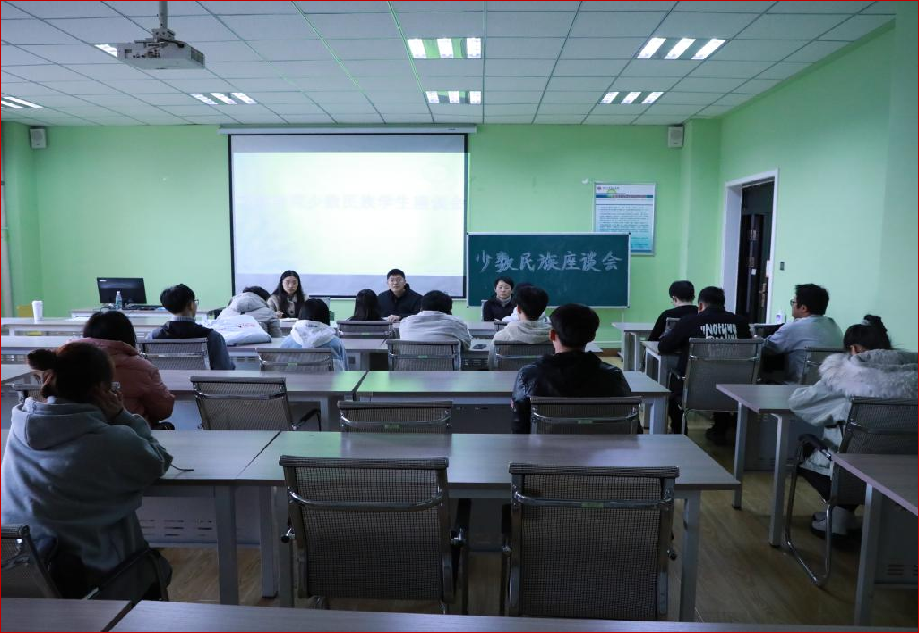 在09522召开本学期少数民族学生座谈会,学院党委副书记田维飞,学生科科长夏志丽、副科长吕超出席。