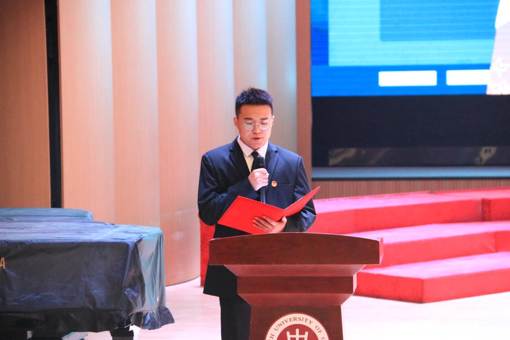 18120342班胡新雨在答辩中表现出色,从全校40名参评的优秀学子脱颖而出,最终进入前10名,荣获第十一届“校长奖章”。答辩过程中,她讲述了从高中的成绩平平,毫无闪光点到来到韩国探花