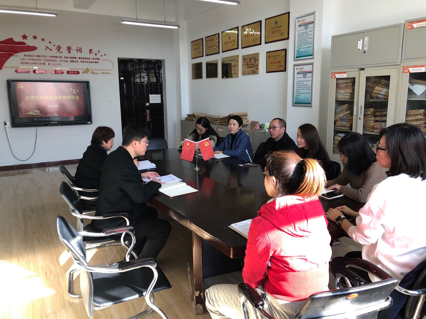 为加强和改进学院大学生思想政治教育工作,11月3日上午10点,学院党委召开思想政治工作座谈会。学院党委书记夏瑞丽,副书记田维飞,学生科科长夏志丽及班主任代表、全体辅导员出席座谈会。会议由党委副书记田维飞主持。