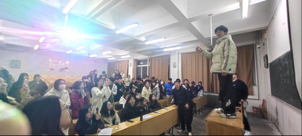 跟随王老师的引导,思考你今天是什么颜色?活动进入了第一轮热身游戏环境“抓手指”以此来活跃现场氛围。接下来进入第二个环节“情绪觉察”,情绪觉察是指我们对自己和他人情绪的感知和认知,包括愤怒、快乐、悲伤、焦虑等。王老师邀请了三名同学上台展示了四个动作,其他同学观察他们的面部表情和肢体动作,由四位同学分别扮演指责、讨好、超理智、打岔四种日常交流中都会出现的人物角色,以演戏的形式表现出四种人物的特点。通过情绪觉察,我们可以更好地了解自己和他人的情感状态,及时发现并处理情绪问题。
