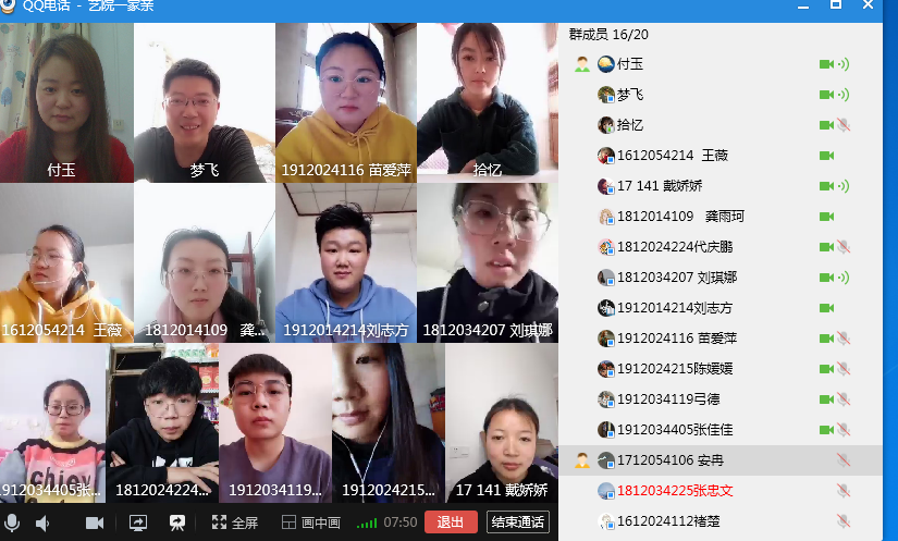在家访中,17名家庭经济困难学生分别详细介绍了所在地区疫情防控情况,居家期间思想、学习、生活情况,自己与家人健康状况,毕业生就业、考研情况和线上学习存在的困难等。其中音乐表演专业学生提出线上声乐课存在语音失真情况,家里没有器乐、无法在家练琴等问题。但是大家基本都能克服困难,端正学习态度,做好学习规划,认真完成正常开设课程的学习。期间,重庆的代庆鹏同学还唱了自己为武汉祝福的原创歌曲《春暖花开》,“寒冬已过去,换你一轮暖阳,阴霾驱散就把希望照亮,被覆盖的笑容无法隐藏......武汉的阳光绚烂如期绽放”。田书记与大家进行耐心地交流,强调现阶段应继续加强自我防护,保障身心健康,用积极乐观的心态面对学习。鼓励大家克服困难,利用居家学习生活的契机,做一些力所能及的家务劳动,完善和充实自己,共同期待疫情结束后早日返校学习。