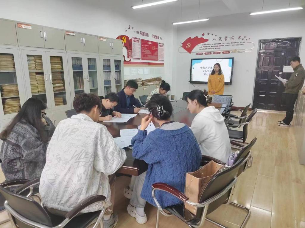 2023年“望山”奖学金评审会在9号楼5层519室召开,参加会议的是学生工作组党委副书记田维飞,学生科科长夏志丽等。